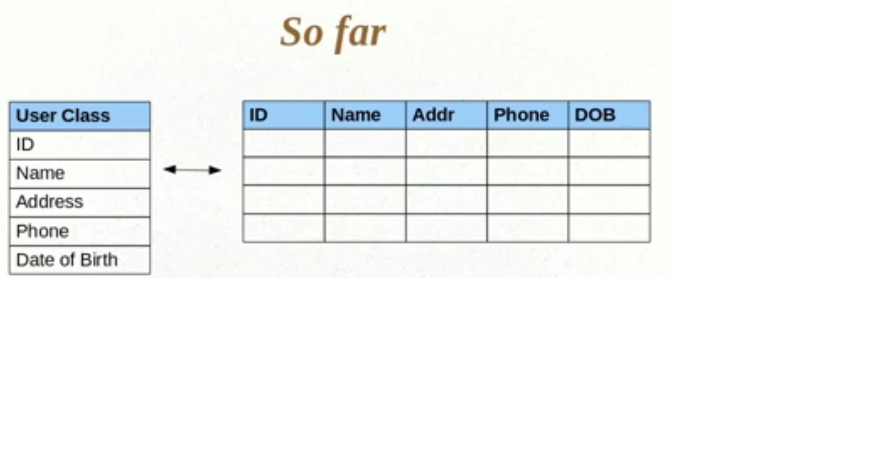 Here, in user class we have created a id, name, dob etc Along With Address object. This Address attribute it Self is an Class and will act as an Attribute in User classs.